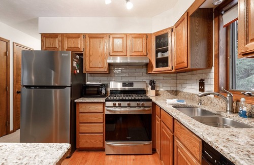Fully equipped with newer stainless steel appliances including: coffee maker, microwave, fridge, stove/oven, dishwasher