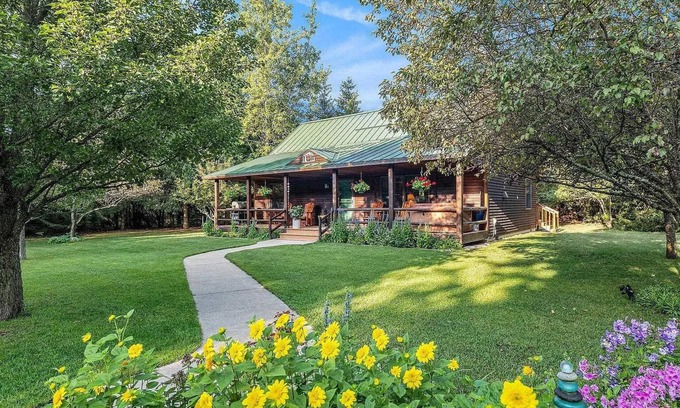 Escape to this cozy 2-bedroom, 2-bath cedar home on 5 peaceful wooded acres, complete with a relaxing outdoor hot tub. Tucked 400 feet off the road, it offers ultimate privacy with walking trails to explore the serene surroundings. Inside, modern updates like granite countertops and new appliances add a touch of luxury. For larger groups or families, we also provide an inflatable bed with pillows, blankets, and sheets, allowing the home to comfortably accommodate up to 8 guests.