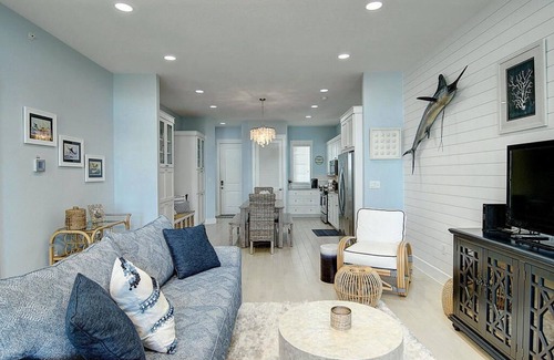 Find your happy place at this beautiful 2 bedroom condo in Cinnamon Shore! Watch the town center entertainment from the balcony or walk over to the many restaurants and have lunch or dinner. You'll never be lacking on things to do and see in Cinnamon Shore. There are three community pools, two stocked fishing lakes, two boardwalks to the beach, and multiple yard game stations throughout the community along with a mile long jogging path. After a fun day in the sun with the family come into this cool and serene condo and cook a nice dinner and lounge in the comfortable living space to watch a movie. As you wind down the day the soothing blue and wood tones relax you into a luxurious sleep in the plush beds. Find your happy place in My Happy Place!