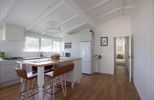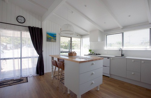 Fantastic accommodation, amazing location. Mako Cottage is conveniently located just a 20 minute stroll from the Fullers passenger ferry and rests on the fringes of Waiheke Island's main village (Oneroa). Take full advantage of short walks to experience 1st class dining and award winning wines at Mudbrick and Cable Bay Vineyards or relax at any one of Oneroa's friendly cafes or restaurants. You won't believe how convenient Mako Cottage is to an array of Waiheke's attractions including the magnificent Oneroa Beach (5 minute stroll away) offering perfectly safe swimming and relaxation, Waiheke's Arts and Crafts centre "Artworks" and the local "Picture Theatre" with current movies (seating: comfy couches!) within 150 metres away, children's playgrounds, coastal walks and of course shopping in the village itself, all within easy walking distance. Mako Cottage is an ideal location for anyone visiting Waiheke, perfect for couples, wedding guests, families and friends to relax and enjoy. The two double bedroom cottage has been recently renovated Oct 2016 with total new fitout in the kitchen and bathroom. Chiromatic King bed for extra comfort in main brm. The cottage features great outdoor living, BBQ on private deck, garage with internal access makes a great home away from home for the pets (large dog kennel outside and fully fenced front half of section), has full My Sky TV, Free Wireless Internet plus stereo with docking station for Ipod and socket for MP3 players. All the comforts of home. Fresh fruit and vege, pharmacy, convenience stores and Waiheke Wine Centre all within easy walking distance. COMPLIMENTARY Tea, coffee, sugar. Fresh fruit from our trees (seasonal) Kids board games. Only 1 minutes drive from ferry terminal or 10 minutes from Sealink car ferry. Firewood is supplied mths of june-August only. Alternatively there is a oil column heater.Special conditions: - Pets (Inquiry) - Smoking outside only - No parties - Guests to clean up and leave cottage as found (we take care of the laundry) Most suited for 2 couples or family with upto 3 children. Note: Fold out sofa couch most suitable for a child/1x adult. . Long Weekends ie: Easter, Queens, Labour and Anniversary Weekends are a 3 NIGHT MINIMUM *** 20 Dec 2023 - JAN 2024: Extras: Cleaning (Required, NZ$150.00 per stay); Linen (included); Pre-approve Dog Stay $50 per stay.