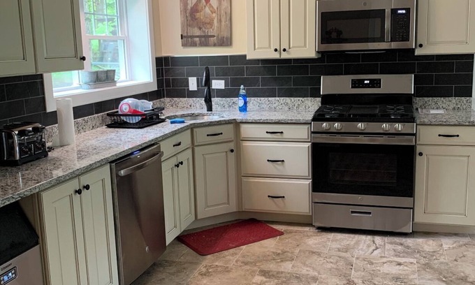 this is a three bedroom house that sits behind a small country church. It is all on one floor. There is a ramp going into the house from the back. the house was totally renovated in 2020. the kitchen is brand new. the original bathroom was gutted and remodeled and another bathroom was added. The house has one bedroom with a king bed, one bedroom with queen bed and one bedroom with full bed. There is a large living room and dining room and a beautiful front porch where you can watch the deer in the evenings. The house has a lovely gas fireplace for wintertime enjoyment. We have update the internet with Starlink that will allow you all the speed you need to upload and download. While there is no cell phone service here, there is a land line and you can use your cell phones through the internet. You are a mile from South Mill Creek Lake with great trout, bass, catfish,crappie and bluegill fishing. you are minutes from all the local trout fishing rivers and streams that are stocked from October to May. You can kayak on the lake if you like. you are 10 minutes from Reeds Creek and Smoke Hole to Rock Climb and 45 minutes to Seneca Rocks, Dolly Sods and Spruce Knob. Travel a bit further and you can spend sometime at Blackwater falls.