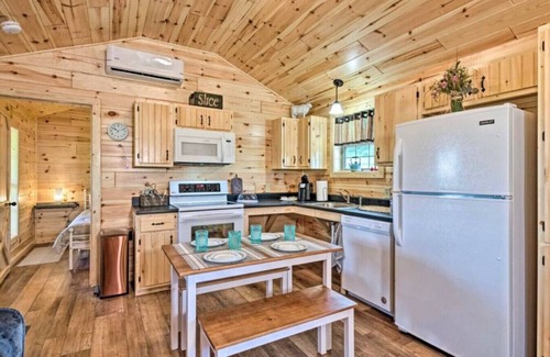Stay in this cozy cabin 12.8 Miles from Mammoth Cave National Park, KY visitors center and experience a true escape. Relax and enjoy the serene views either on your porch facing the water or with your friends at the common area Pavilion. Go for a refreshing dip in the lake, or go fishing, or enjoy a leisurely kayak ride. Go on a journey to our secluded private cave and waterfall then enjoy hiking, fossil hunting or explore our landscaped playground. This is not just a cabin, it is a resort!