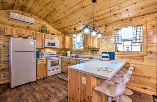 Stay in this cozy cabin 12.8 Miles from Mammoth Cave National Park, KY visitors center and experience a true escape. Relax and enjoy the serene views either on your porch facing the water or with your friends at the common area Pavilion. Go for a refreshing dip in the lake, or go fishing, or enjoy a leisurely kayak ride. Go on a journey to our secluded private cave and waterfall then enjoy hiking, fossil hunting or explore our landscaped playground. This is not just a cabin, it is a resort!