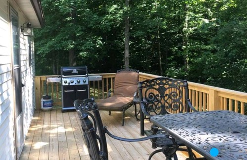 *Large deck with propane grill off the fully equipped kitchen is perfect for indoor or outdoor dining. There is a lower level patio with porch swing and a fire pit in the backyard.