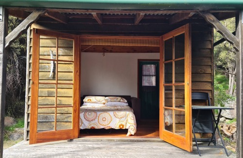 Our romantic, rustic hut is nestled into the bush and this is a true 'off the grid' hut experience with solar power, hot water bottles and a composting loo.