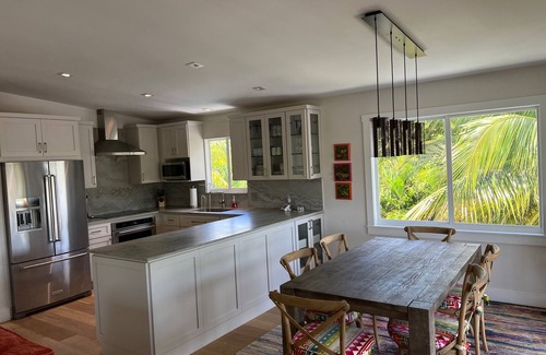 This tranquil waterfront pool/hot tub home is situated in a tropical garden in a quiet, secluded neighborhood just off the Florida Bay. As you step foot on this property you are invited into a serene island oasis with incomparable privacy. The lush tropical landscaping creates a calming and peaceful environment mirroring that of an exotic resort. The unique boho chic details pair harmoniously with the environment capturing the essence of tranquility. ‘Pura Vida’ awaits (simple life). The custom open concept kitchen and great room layout looking over the enclosed screened-in porch offers a sophisticated entertaining venue with a seamless indoor-outdoor transition. Enjoy easterly breezes from your porch looking out over the wide deep water canal with 78 feet of dockage for your vessel. Infinite entertaining opportunities exist throughout the property grounds with a grand gazebo lounge area and screened-in outdoor living space off the resort-style pool and waterfront patios. The open-air outdoor shower with a waterfall shower head will leave you feeling invigorated and refreshed. Launch kayaks into the canal from your private sandy ramp and you’re a short paddle to the Florida Bay or take your boat out for backcountry fishing, lobstering, or water sports. Quick oceanside access via Adams Cut. Timeless renovations and designs are showcased throughout the master suite and two secondary bedrooms with a shared hall bathroom. The kitchen features quartz countertops, stainless steel appliances, and white custom cabinets.