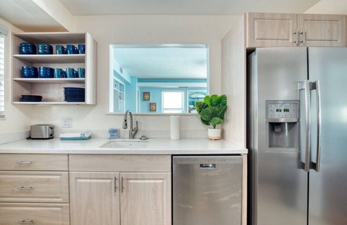 Have fun with the whole family at this stylish place. Located directly on the Atlantic Ocean with private beach access and a gorgeous patio to watch kids and dolphins play. This updated home has three large bedrooms, all with private bathrooms. Oversized living room with expansive sliders give breathtaking views of the ocean. Fully stocked kitchen for all your stay-at-home meals. Super cool game room with air hockey, arcade, darts and more. Parking for 4 cars. Excellent area. Hour to Disney.