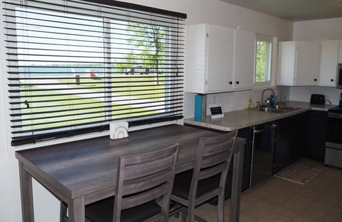Each of the bedrooms features a queen-size bed and a large closet. The kitchen features all modern appliances including a beautiful new French-door refrigerator with a bottom-mount freezer. The kitchen also has an electric range, microwave, new stainless steel dishwasher, sink, a very cute "coffee cabinet" for preparing coffee, and lots of counter space and cabinets. Pots, pans, dishes, and cooking and dining utensils are all included with the rental as are sheets and bath towels. There is a little dining area next to the kitchen and it provides a great view of Manistee Lake while dining. A new 4-person dining table is on order and will be in place when the property goes live for rentals on May 3, 2021.