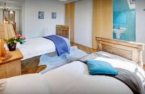 The accommodation is set over four floors, with the main living area on the first floor - this is a large open plan room with a dining area, sitting area with a beautiful stone fireplace and a separate TV area. The modern kitchen has three ovens, two dishwashers and a large American-style fridge - cooking large meals for a crowd or separate menus for smaller groups will be a real pleasure!