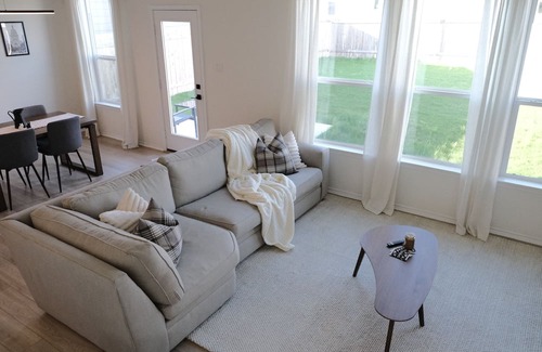 This newly-built, 3 bed / 2.5 bath home is fully furnished and located in Manor, Texas - just 25 minutes from downtown Austin and the airport, and even closer to the Tesla Gigafactory, Samsung Campus, Mckinney Falls State Park & more! A perfect home base to explore all that Austin has to offer.