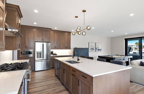 This brand-new waterfront retreat offers the perfect blend of modern luxury and relaxation, making it an ideal choice for both leisure and professional stays. Nestled on a scenic riverfront, just minutes from Anchor Bay and Lake St. Clair, this home is perfect for boating enthusiasts—bring your boat and take advantage of the private dock! Designed to accommodate up to 10 guests, the home features spacious interiors and stunning water views. The primary bedroom includes a private upper deck, offering a peaceful space to enjoy the scenery, while the lower patio is perfect for outdoor living, featuring a hot tub, firepit, grill, and ample seating. The secondary bedrooms each have ensuite bathrooms, and the primary bathroom boasts a luxurious double shower. For added convenience, the laundry room is located upstairs near the bedrooms. Inside, the home includes a pool table and a dedicated workspace, making it great for remote work or professional retreats. The spacious backyard and waterfront location offer the perfect setting to relax and enjoy the surroundings. Whether you're docking your boat, relaxing in the hot tub, or hosting a work retreat, this property provides the ideal balance of comfort, productivity, and leisure.