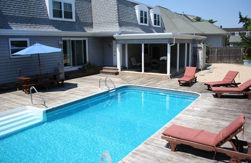 Spacious seven bedroom home located in one of the last private, lifeguarded beach communities with inground pool just three houses from the ocean Central air-conditioning. Beach badges provided to enjoy this little peace of heaven with extended family and friends. Our home includes everything needed to revel in a relaxing family vacation by the shore including large living room, family room with TVs open to a fully equipped kitchen. Barbeque outside and enjoy meals either in the dining room or outside on the deck overlooking the ingound pool.