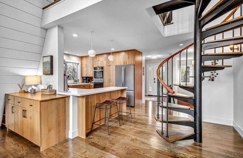 This stylish retreat seamlessly blends rustic charm and modern comfort. With nearby hiking trails and scenic vistas, nature awaits at your doorstep. Relax in the hot tub on the private deck or explore the vibrant Stevens Point offerings. Perfect for a tranquil getaway or adventure-filled stay. Experience the best of both worlds in this idyllic retreat.