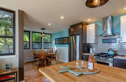 The cabin has been completely renovated from roof to foundation. It's very cozy with a gas fireplace and a modern rustic vibe. A fully equipped kitchen is only missing your mad cooking skills and ingredients from the local farmers market to produce gourmet meals. Curl up in the cozy family room to watch a movie (Netflix is provided) or be entertained by the "Amazon Echo".