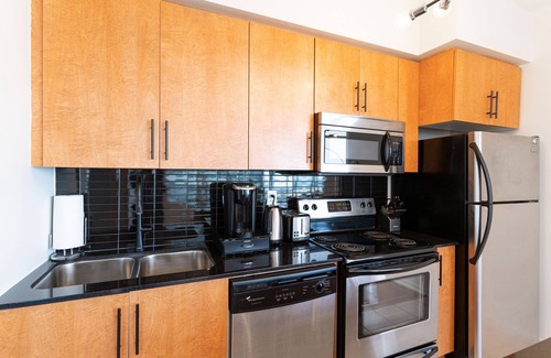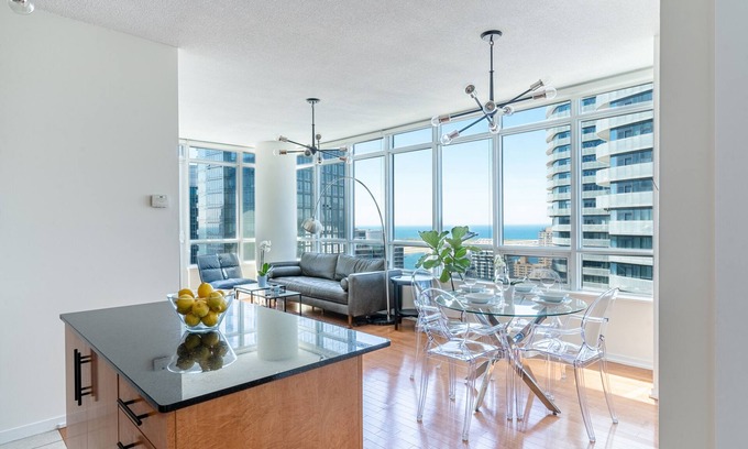 Newly- furnished 2 bedroom- beautiful luxurious accommodation located in the heart of downtown Toronto. Ideal stay for leisure and business. Elevator ride away from the LCBO, Supermarket, Scotiabank Arena, Union station, Toronto Convention centre, Ripley's Aquarium, UPX train, Harborfront from, Cn tower, Roger Centre, Roy Thompson hall. Wifi, Netflix Keurig, shampoo/conditioner. FEATURED WITH A QUEEN SIZE AIR MATTRESS FOR THE ADDITIONAL 2 GUESTS