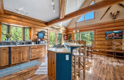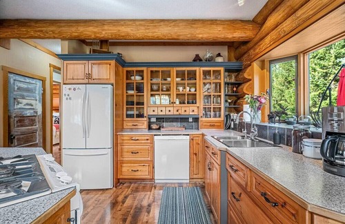 Gather your crew to relax, recharge, and reconnect at Maple & Moose. This 2500 sqft, 5-bedroom, 3-bathroom log cabin is just outside of Invermere, and features glorious views of the surrounding Rocky Mountains. Soak under the stars in the 7-person hot tub, challenge each other to a foosball match in the games area, or gather around the fire pit for s`mores after a day of hiking, golfing, or lakeside adventures. With room for the whole family (and then some), this is where core memories are made.