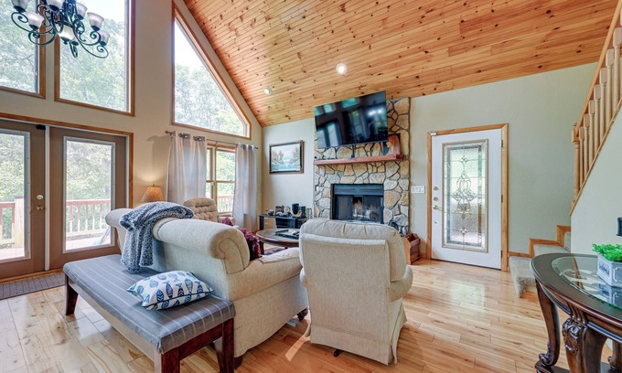 Head to this serene and secluded 1-bedroom, 2-bathroom vacation rental in Marble, North Carolina! This rustic-yet-modern cabin has all the amenities you need to make your vacation carefree, including a sleeping loft for extra guests, a fully equipped kitchen, and an outdoor fire pit. Wake up at ‘The Lazzzy Cabin’ to breathtaking forest views before spending your days river rafting or hiking in the Nantahala National Forest. Your Smoky Mountain getaway awaits!