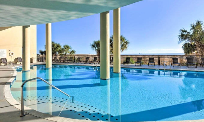 Delight in the captivating beach views from this gulf-front, 2-bedroom, 2-bathroom vacation rental condo on Dauphin Island. Start your morning with an al fresco meal on the large balcony, then discover the diverse marine life at Dauphin Island Sea Lab or step back in time at Fort Gaines! Return to the condo to relax in the hot tub or sauna while the kids play in the pool.