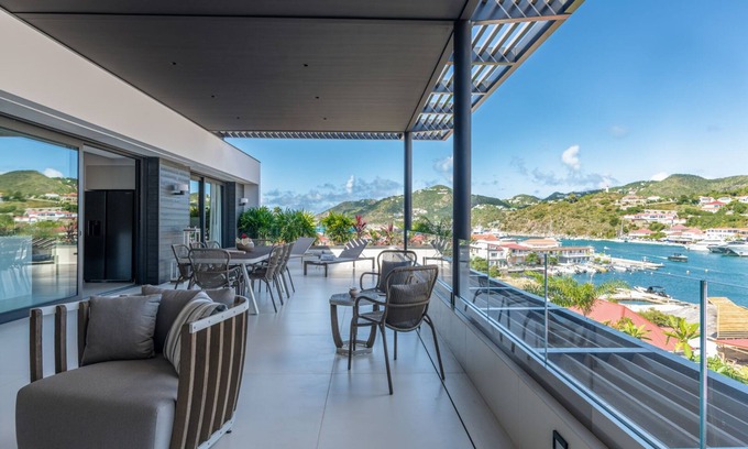 Vacation rental Mardix Prestige is a sumptuous three-bedroom apartment located in the heart of Gustavia. Overlooking the harbour, it is an ideal and luxurious place for families or groups of friends looking for a vacation spot close to lively St. Barths’ shops in a peaceful and relaxing setting.