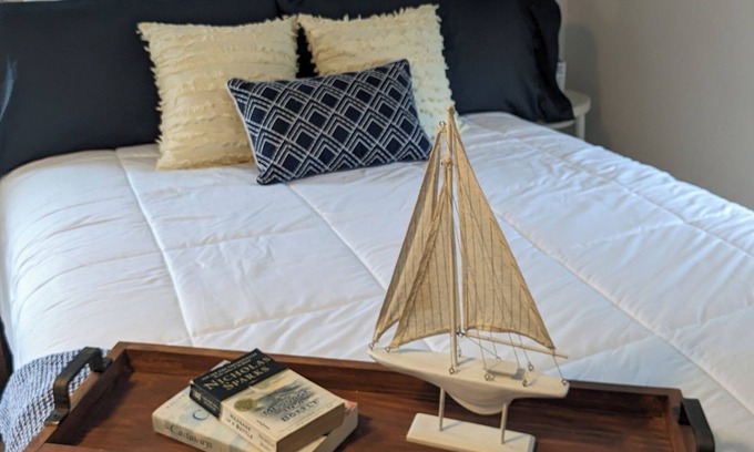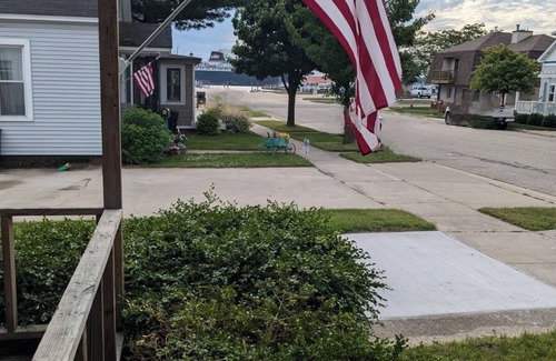 Relax, refresh and sip on a cool beverage on the front porch as you watch the S.S. Badger and boats go by the marina! Enjoy dining, shopping and entertainment across the street too! Located in Ludington, this lovely house is a dream. Step indoors for a comfortable stay. The leather sofa slightly reclines. You will think the sofa is the vacation! Books, games and a large tv provided but we think you will want to go to the beach, mini golf, lighthouse, playground, skate park, or ampitheatre all less than 1.3 miles away. After a long day of sun and play you get to rest up for another day of play in this 3 bedroom home Including 1 queen bed, a double and a twin, our property offers superb comfort for guests. Each bed has 2 pillows per person ( I.E. Queen & full beds have 4 bed pillows for your comfort (Twin 2 pillows). Stay connected with WiFi and enjoy the cool breeze with AC. This cared for home offers one full bathroom on the 2nd story. Linens, soaps, and some toilet paper provided for your convenience. Need to work remote or play some games on your computer a desk and office chair provided. Whether you're relaxing in the cozy bedrooms or working in the charming office, you're sure to make fantastic memories with a stay at our place.One of the best features is you can walk to almost every major attraction in Ludington from this home! Don't spend time driving your vacation away...reserve here & enjoy the fresh unsalted air of Lake Michigan as you walk around town to nearby attractions!
