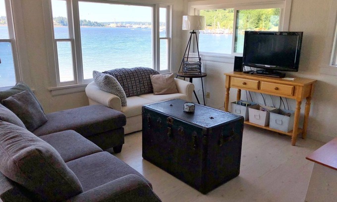 Welcome to the the Marina View Cottage on Sinclair Inlet. This beautiful home offers two bedrooms and one bathroom, with views overlooking the ocean. From the living room and outdoor deck area you can watch seals play, fish jump and boats putter by. This relaxing oasis comes with a fully equipped kitchen, spacious outdoor deck with BBQ, a wood fire stove perfect for the fall and winter months, office nook with a desk, a small yard ideal for lawn games, and of course is just steps away from the beach!