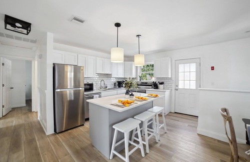 Welcome to our updated and inviting nautical-themed residence. The property's unique charm and coastal-inspired decor create a memorable experience. Guests will love their stay as they enjoy the excitement of the cozy ambiance around the fire pit in the private backyard, and the convenience of a washer and dryer. With the added convenience of a grill for outdoor cooking, guests can truly relax and make the most of their time in our tranquil setting.
