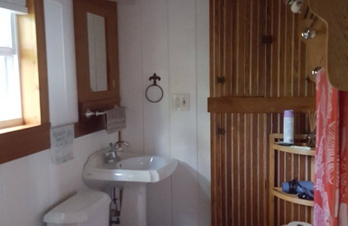 This 1912 cottage which has been fully renovated and updated inside has 1 bedroom with Queen size bed downstairs and 1 full size bed in upstairs loft .A full kitchen , dining room , and living room.