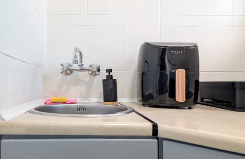 Market Square View Studio features a living area with a fold-out sofa and a double bed, a kitchenette, a bathroom, a hallway, and a large utility room where guests can store their luggage. The apartment includes amenities such as high-speed Wi-Fi, a Smart TV, a washing machine, a refrigerator with freezer, an induction cooktop, an oven, as well as an iron and a hair dryer. The apartment is equipped with air conditioning, which is a very comfortable feature – especially during warmer days – ensuring a pleasant temperature at any time of year.
