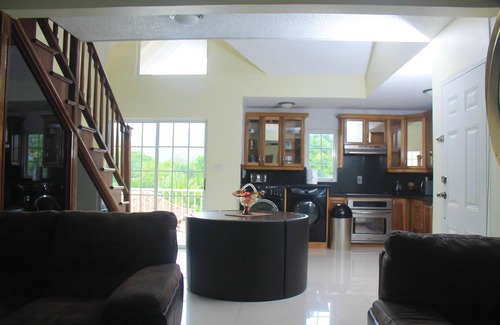 The view from the roof terrace is beautiful overlooking the houses on the hill side, five minutes from the Bob Marley Museum, Jencare Spa, TGIF and the University Hospital..