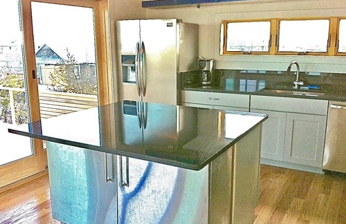 The granite/stainless kitchen is a cook's delight, fully equipped with quality appliances and kitchenware, designed to make cooking together easy and fun.