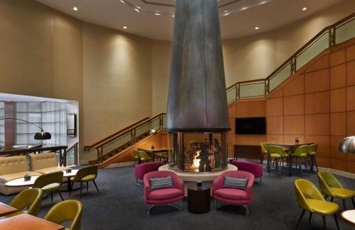 This hotel is located beside the Toronto Eaton Center. Trios Bistro is on site and a 32-inch flat-screen TV is featured in rooms. Dundas Subway Station is 1148 ft away. Guest rooms at the Marriott Toronto Downtown Eaton Center Hotel include cable channels with pay-per-view movies. A coffee maker and an in-room safe are provided in the rooms. A roof top pool and a 24-hour fitness center are on-site at this nonsmoking hotel. The hotel includes foreign exchange services. The Rogers Center, an entertainment venue, is a 5 minutes’ drive from the Toronto Marriott Eaton Center Hotel. Dundas Square is located 1640 ft away, just across the street.