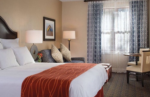 Timber Lodge Tahoe is located in the heart of aptly-named Heavenly Village, home to many shops, restaurants, and businesses. Wander the heated cobblestone sidewalks, pass under wooden archways, stop at one of the open bonfire pits to warm up, or experience a live concert. Of course, you're mere steps away from Heavenly Mountain Resort, with several other ski resorts in the area as well! If you're visiting in the summer, enjoy water sports on the lake or hiking and biking through several scenic mountain trails!