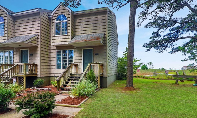 Located just off of Ridge Road on the southern portion of the island, you'll find Marsh Point. A two bedroom, two and a half bath townhome unit with (shared) dock access. A lovely screened in porch dining area for cooking up the crabs you'll catch right off the dock and enjoying with family and friends, you're sure to be comfortable here! On the ground floor you'll find the comfortable living area with plush new furniture, a fully-equipped galley-style kitchen (electric range, refrigerator, dishwasher, microwave), a dining area with table, a utility closet with a washer and dryer, and a half bath/powder room in the hallway. Upstairs you'll find the bedrooms - a master suite with queen bed and a full bath. The other bedroom upstairs boasts a balcony with a beautiful view of the salt marsh below. For sleeping arrangements you'll find a bunk (a full on the bottom and a twin on top - always fun fighting over who gets that one!). Another twin is also located in the second bedroom as well. A full bath is located in the hallway upstairs. If you look to the grassy grove across the street you'll be looking at the location of the former Beebe Ranch, home of Misty of Chincoteague. You can almost see the little pinto paint filly frolicking through the paddock. Sit on the bench at the end of the dock with a cocktail or a cup of coffee at sunset and feel the cool island breezes coming off of the inlet and Curtis Merritt Harbor, just a little further down the road. Ride into town to get a bite to eat, or grab a few ingredients at one of our local seafood markets (a wonderful fishmonger and lobster lady lives just across the street) to make something easy at home. No matter what you decide, make a point to enjoy yourself at Marsh Point.