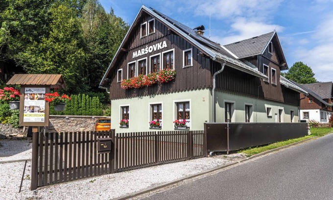 MARŠOVKA- mountain cottage with six rooms for your relaxation is located in Horni Marsov. MARŠOVKA- mountain cottage with six rooms for your relaxation provides accommodation, featuring Security/Safety, Internet, Pet Friendly, among other amenities. This Cottage features Security/Safety, Internet, Pet Friendly, to make your stay a comfortable one.