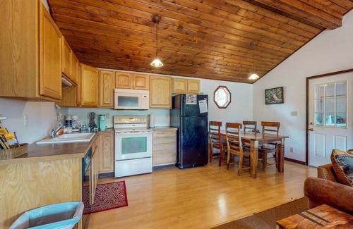 This quaint mountain-view cabin is perfect for your next get-together, with plenty of room for everyone! The private front porch is just steps from beautiful Lake Mary, making for a serene backdrop. The large fenced yard along with adjacent open space gives you unobstructed views. The open concept Livingroom, Kitchen, dining area has vaulted pine ceiling. A large picture window so you can enjoy the view inside too. Cozy next to the wood burning fireplace and reminisce over a cup of hot cocoa with loved ones after a long day of enjoying the outdoors.