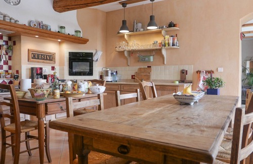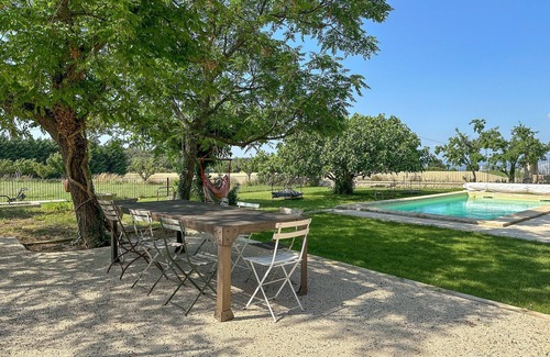 The Mas des Lavandes, a superb stone farmhouse renovated and insulated, located in a typical small village in the Drôme Provençale, combines authenticity and modern comfort for friendly and relaxing holidays in Provence.During your stay, the two cats of the house will be able to keep you company.This spacious and very bright house of 300 m² of living space, located on a closed and landscaped plot of 1,000 m², can comfortably accommodate up to 9 people.The interiors:Ground floor:•Friendly dining kitchen.•TV lounge and office space.1st floor:•Room 1: 160 cm bed with private bathroom (walk-in shower)•Room 2: 160 cm bed•Room 3: 140 cm bed with wardrobe•Office space with cupboard/wardrobe•Bathroom with bathtub•Separate toilet2nd floor (under the roof, ideal for children):•Dormitory with 4 single beds (90 cm)•Play area, library, relaxation spaceThe exteriors:The enclosed and tree-lined garden offers a typically Provençal setting, perfect for meals, naps in the shade or outdoor games.•Friendly terrace with covered space.•Plancha and barbecue barbecue prohibited during heatwave/drought, instructions to be followed).•Private 8x4m swimming pool, secured by a wrought iron fence and an old gate.Practical information:•Bed and towel linen option: £120 per booking (upon request).•House classified as 3-star furnished tourist accommodation.•Deposit required: £1,500 (not cashed unless damage is noted).•Holiday insurance (home extension) mandatory.•Note: a local riverside café organises an evening or show every other Saturday (information provided in advance).