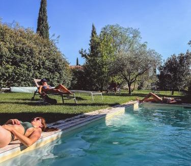 Yes, this Mas des Vignes has a swimming pool. Check the Facility Overview section for details about the pool and other available facilities.