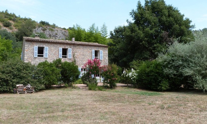 In a 4 Ha property, superb Provencal. Terraces with garden furniture. Warm atmosphere and colourful, calm and rest assured. Near the House of the owner without vis à vis. Electric gate, about 1 km dirt road. Oval pool (14x11x1.60m), vertical sloping, alarm. Barbecue. River at 100 m. Central heating. Ground floor: Entrance Hall, wc, laundry, kitchen, stay fireplace (€40 1/2 stere). First floor: library, a bedroom with a double bed (140cm), a bedroom with two beds trundle (90cm) and a bedroom with a double bed (160cm). Bathroom toilet. Package required heating from October to April.