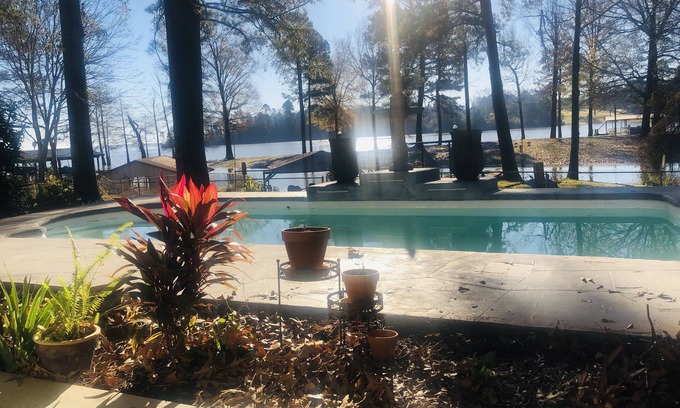 Welcome to Mason Creek on Toledo Bend! This beautiful two bedroom one bath cottage with fully equipped kitchen, wood burning fireplace, comfortable king and full size bed, large walk-in shower and an in ground beautiful pool offers you and your guests an escape from the everyday busyness of life. Mason Creek is an oasis where many peaceful memories can be made fishing, boating, swimming or relaxing by the pool. This cozy cottage is located a short drive north of the Milam, Tx. intersection and is easily accessible by good roads not far from Holly Park Marina where you can get a great cheeseburger and fries and skip the cleanup of cooking. The small family friendly street offers safety for children to bike ride and explore the nature around them as well as two large kayaks for further adventure. Mason Creek has everything you could ask for in a home and more! For days spent inside you can stay entertained with one of the nearly 30 DVDs offered. Launch your boat right around the corner and enter the small canal right into your very own boathouse.