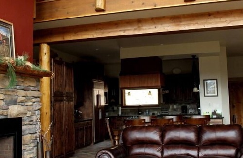 Travel upstairs to the log I-beam loft and once again view the sights of the mountain range through the wall of windows spanning both floors then venture out on the deck to enjoy the serenity and smell the fresh mountain air. It truly has spectacular views, especially during the sunrise and sunset hours of the day. Stand at the log banister and overlook the Great Room below or turn to the left and visit the second master bedroom. This room has rustic log furniture, a walk in closet, gas fireplace, flat screen television and of course, more views. The master bath has a double vanity with granite countertops, ceramic tile and a steam shower. The bedroom next to the master houses a bunk bed with two full size beds. The closet in this room contains toys, books and games to entertain both children and families alike. Just outside the door of this room lies another full bathroom. The final bedroom on this floor is quite charming and has a queen bed, a private full bathroom and a wood lined cathedral ceiling. Go down the hall and find yourself in a lovely family room with a gas fireplace, wet bar with granite countertops and views, views and more views. Keep on the lookout; we have seen Elk, deer, hawks and even a few wild turkeys! We also have heard bear and bobcat sightings are common in the area, so have your camera ready!