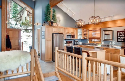 Located in Snow Pine Estates this chalet is a TRUE ski-in/ski-out. You’ll ski out of the bottom level of the home, down the road and directly to the Ridge Rocket, Snow Ghost and Plaza Chairs. When you’re ready to head home, you’ll simply take Serwas run to ski right to the front door!