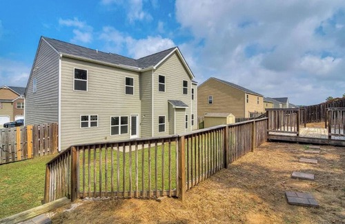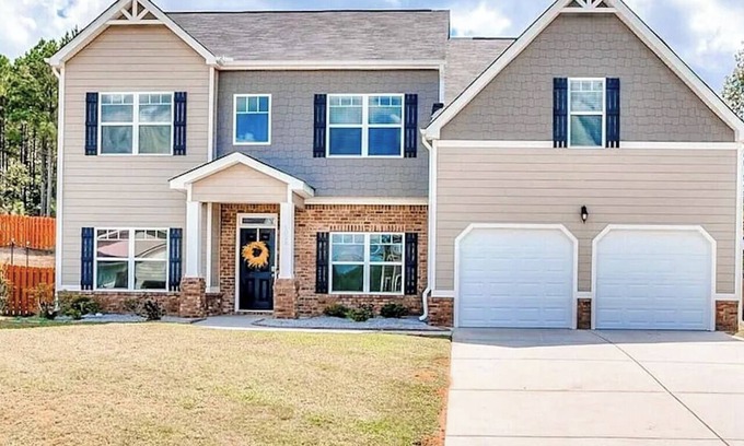 This beautiful brand-new two-story home contains three upstairs bedrooms including a luxurious Master's suite featuring a king sized bed, walk in shower, and large tub. Additional bedrooms include a queen-sized bed each with individual full bathrooms. The fully stocked kitchen, living room, one bedroom and full bath, are all located downstairs. Outside you'll be able to take advantage of outdoor furniture and fire pit. Kickback, relax, and enjoy everything Grovetown and our house has to offer.