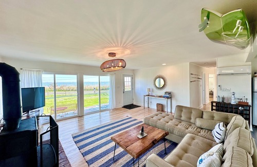 The home sleeps 6 comfortably: the primary bedroom and a second bedroom both come with queen-size beds and the third bedroom has two single beds. The open and expansive living, dining and kitchen area is great for spending time together enjoying cooking, entertaining and the never-ending water views. The home is truly the epitome of waterfront living. Open all the windows and you get an ocean cross-breeze second to none. We have all the necessities one may need to spend a relaxing and enjoyable time. Walk across to a small bay beach or Kayak to the isolated part of Fire Island and swim its pristine water. Pick up fresh oysters from our neighbor that owns Violet Cove Oysters. Bring your bicycles and enjoy riding by the waterfront and Marina area.