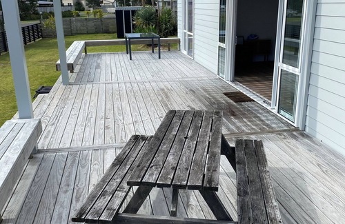Family and pet friendly retreat on Harbour Drive, Matarangi. Just a short walk to the beach and close to the harbour, this fully fenced property is perfect for those seeking a relaxing coastal getaway. The open plan living flows onto a large deck ideal for dining and enjoying the fresh ocean breeze. Whether you're here for a family holiday or a quiet escape, our comfortable home offers everything you need for a memorable stay.
