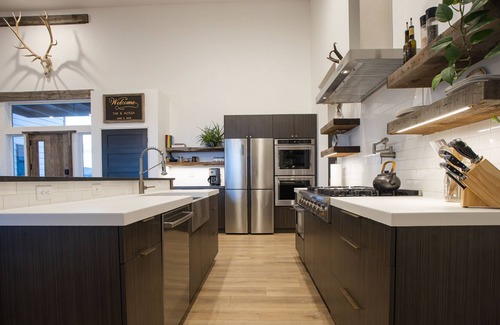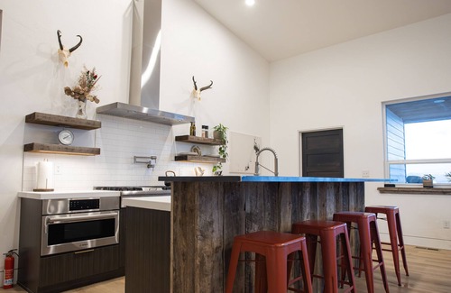 Experience a tranquil escape in a Montana vacation home inspired by a castle in Japan. The minimalist design features clean lines, natural wood accents, and expansive windows offering breathtaking views of seven mountain ranges. Relax in the cozy living area, cook in the sleek kitchen, and rest in the peaceful bedrooms. Enjoy outdoor living on the spacious deck and explore many of Southwest Montana's best destinations from this centrally located home.