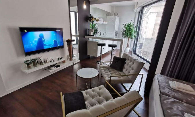 MAXX offers accommodations in Bielsko-Biała, 19 miles from Auschwitz and 20 miles from Sports and Recreation Centre Oświęcim. Featuring inner courtyard views, this apartment also offers free Wifi. The family-friendly restaurant serves American and British dishes, as well as Polish and European cuisine. This air-conditioned apartment comes with a seating area, a fully equipped kitchenette with a dishwasher, and a cable flat-screen TV. Towels and bed linen are provided in the apartment. For added privacy, the accommodation features a private entrance. Tychy Winter Stadium is 24 miles from the apartment, while Energylandia Amusement Park is 27 miles away.