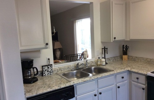 The home is nicely decorated with everything you need. The kitchen is well stocked with plates, glassware, cutlery, microwave, coffee maker, dishwasher and the fridge has an ice and water machine