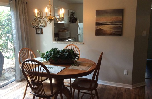 Our screened lanai is shaded by beautiful, huge oak trees keeping it cool for evening lounging. The yard is fenced with a grill at the side of the home beside the convenient sliding door.