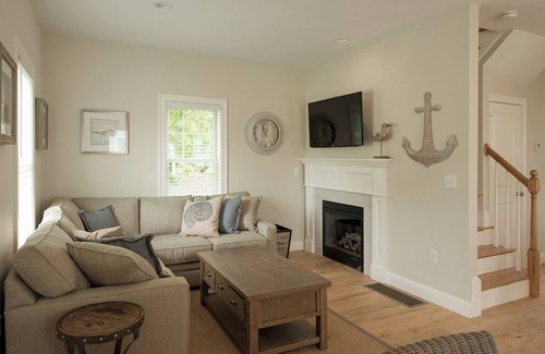 Do you want to be a few hundred yards from one of the best beaches in world? This charming, newly built three bedroom home is steps away from bayside beach next to Mayflower Beach (known to be the best beach on Cape Cod). Kid friendly and safe, this beach has a low tide that affords children to explore tidal pools and allow parents to relax from a distance or find their own solitude through long walks on miles of beach and dune. In the evening, the sun sets over the Cape Cod Bay to create a bucolic and romantic atmosphere. Once here, you can literally leave your car parked. The property sits between two of the Cape's most popular restaurants- 'Chapin's' which is a new and popular family restaurant with an outdoor deck and a large bar area with nightly entertainment in a neighborhood atmosphere and 'Gina's' which is famous for its intimate setting and chef-inspired Italian cuisine.
