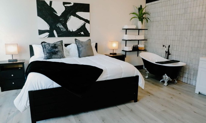 The Mayor's Suite offers huge windows with an Incredible Historical view of Aberdeen. A nice claw foot tub with a cozy bed! The living room is an open floor concept so you can enjoy cooking, watching TV, and talking with your guest in the living room all at once! This suite also offers free wifi to all of our guest! So go ahead and book your stay!
